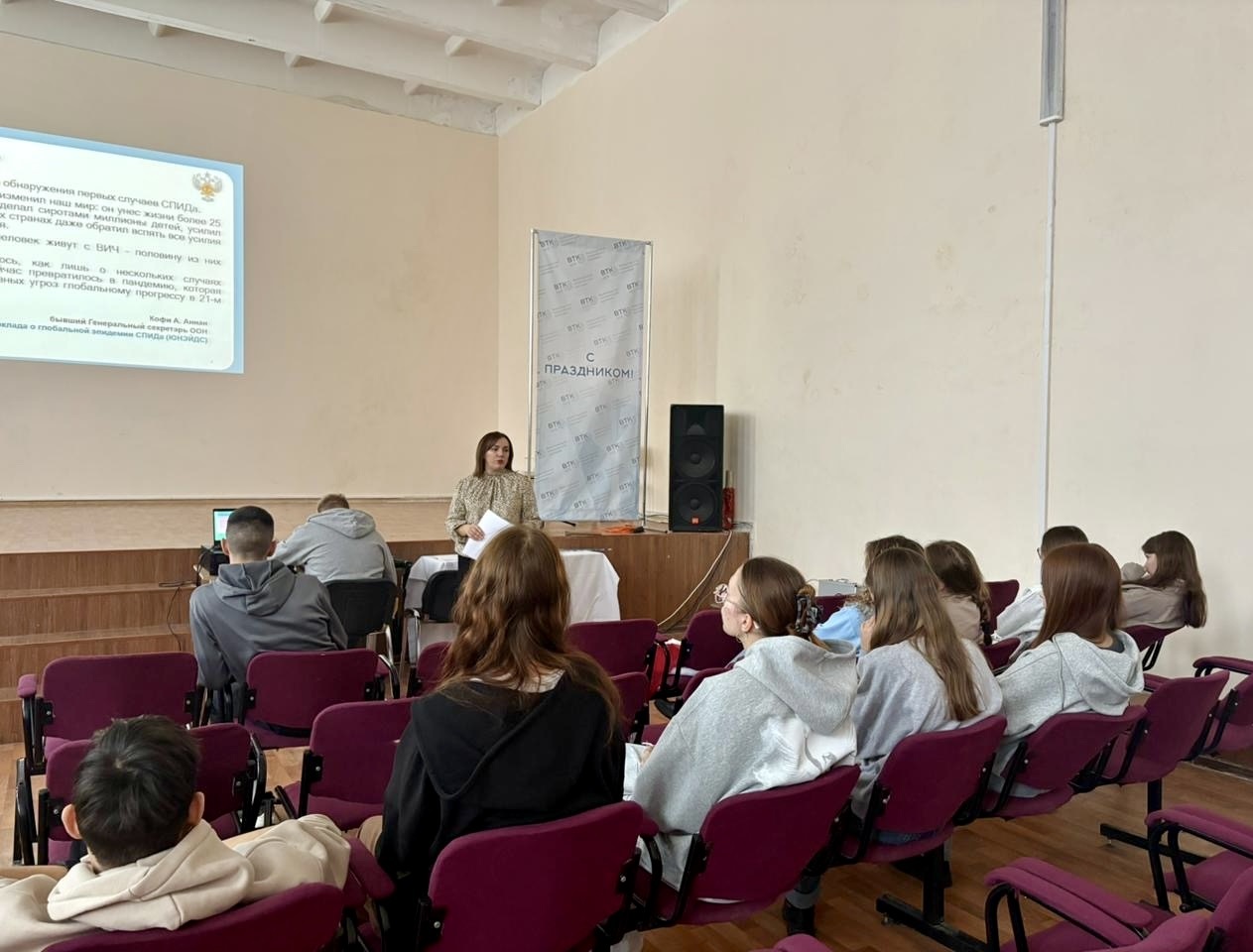 На лекции со студентами обсудили вопросы путей передачи ВИЧ-инфекции, мерах защиты и профилактики заражения, необходимости и доступности обследования, о анонимности при сдаче анализа при наступлении 18-ти лет, бесплатном обследовании и лечении. Разобрались в понятиях ВИЧ и СПИД, стадиях заболевания и как вирус действует на здоровый организм при возникновении заболевания.