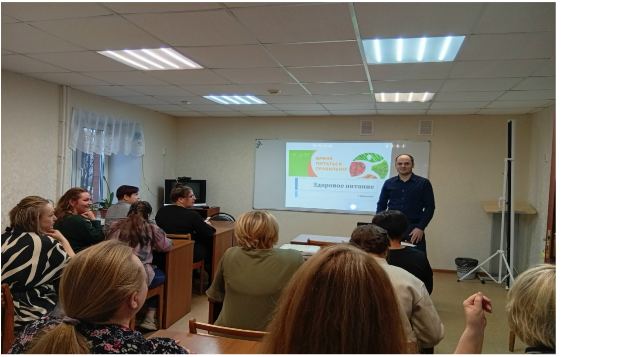 В Комплексном центре Кирилловского района с сотрудниками учреждения прошло мероприятие на тему «Время питаться правильно». Встреча прошла с и.о. главного врача филиала ФБУЗ «Центр гигиены и эпидемиологии по Вологодской области» Васильевым Александром Ивановичем.