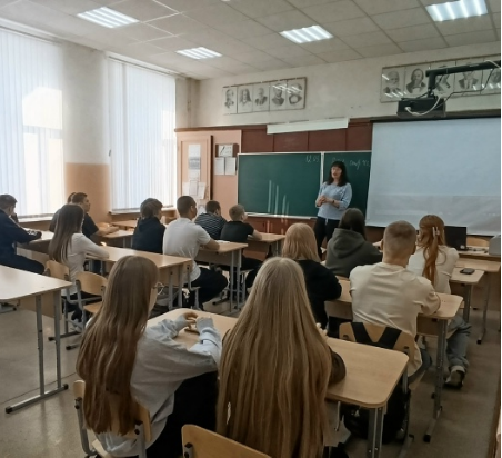 В рамках профориентационной работы 12 марта 2026 года с учениками 9б класса МБОУ «Харовская СОШ №2» проведен тематический урок. Ребята встретились с инженером филиала ФБУЗ "Центр гигиены и эпидемиологии в Вологодской области" в г. Сокол Головановой Татьяной Алексеевной.